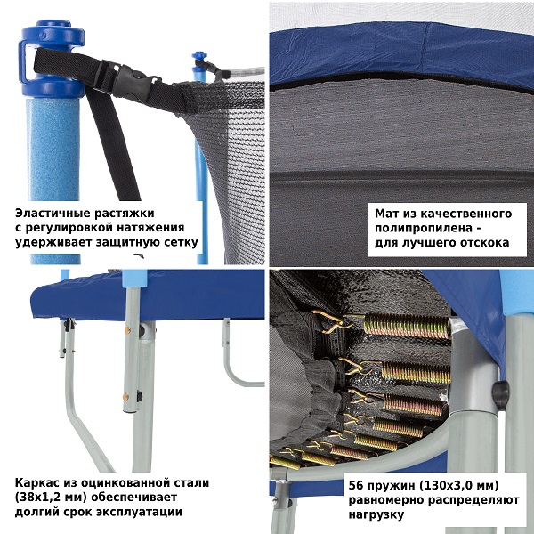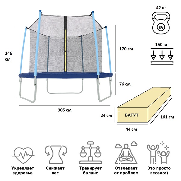 • Комплектация: батут 10-футовый (3 ножки + 6 стоек)