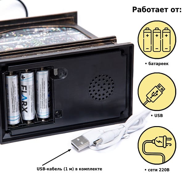 Декоративный новогодний фонарь Winter Glade станет ярким украшением дома в период новогодних и рождественских праздников. Работает фонарь от 3 пальчиковых батареек типа АА (в комплект не входят), USB шнура (входит в комплект) или сети 220V (адаптер в комплект не входит). Фонарь имеет 2 рабочих режима: 1 - подсветка, механизм мерцания, кружится снег и начинают играть по очереди 8 мелодий; 2 -подсветка + механизм мерцания без музыки.