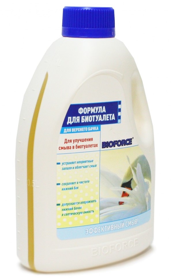 Жидкость для верхнего бачка биотуалета ФОРМУЛА BIOFORCE предназначена для качественного смыва в биотуалетах. (1000мл)