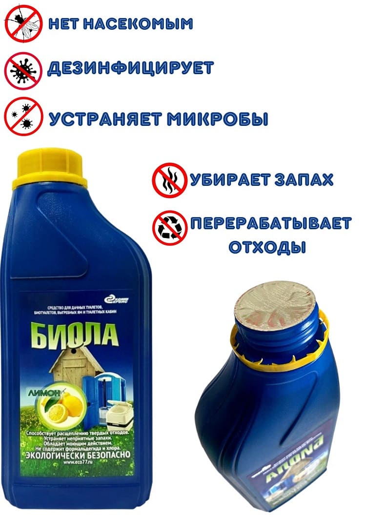 Задачи жидкости Биола: быстрое разложение и расщепление отходов, дезинфекция и дезодорация. Жидкость помогает обеспечить нормальное санитарно-гигиеническое состояние биотуалета, устраняет запахи, предотвращает газообразование и брожение. В результате вы получаете максимальное удобство и комфорт от использования биотуалетов или туалетных кабин.