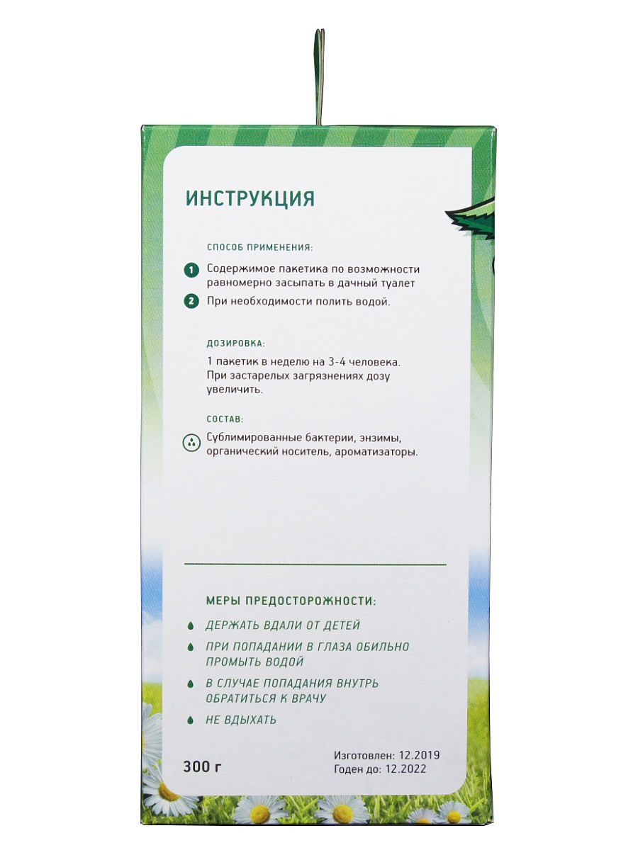 Содержимое пакетика засыпать в дачный туалет и залить водой;