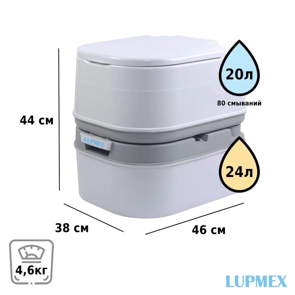 биотуалет LUPMEX жидкостной, имеет современный дизайн, высокое качество изготовления и не требует подключения к центральной канализации и водопроводу.