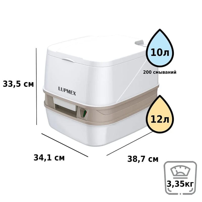 Биотуалет LUPMEX – простое и функциональное решение при отсутствии стационарной канализации. В модели есть бак для чистой воды на 10л (40 смываний), а также бак для отходов на 12 л с индикатором заполнения. Биотуалет имеет удобное эргономичное сиденье, поршневой насос и эффективную систему смыва.