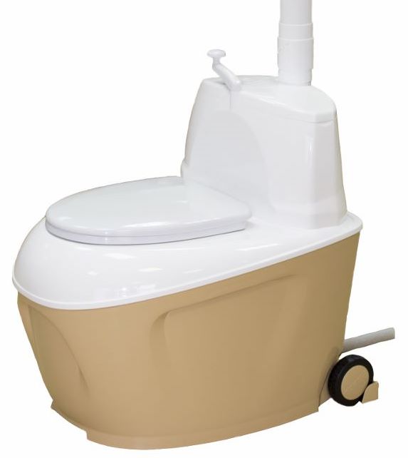 После установки туалета все действия, связанные с его обслуживанием, не потребуют двигать туалет с места на место, отсоединять вентиляционный стояк или дренажную трубу – достаточно будет только повернуть специальную муфту (адаптер) вытяжной трубы. Верхнюю часть туалета при этом снимать не обязательно. К месту опорожнения туалет передвигается на колёсах за переднюю ручку.