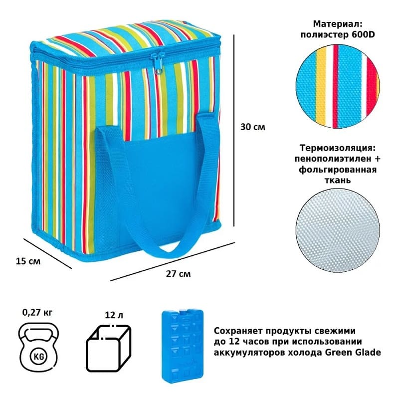 Изотермическая сумка-холодильник Green Glade P1012 12 л является незаменимой вещью в поездках на дачу, на пикниках и в дальних путешествиях. Кроме того изотермическая сумка-холодильник удобна для переноски контейнеров с едой и ланч-боксов.