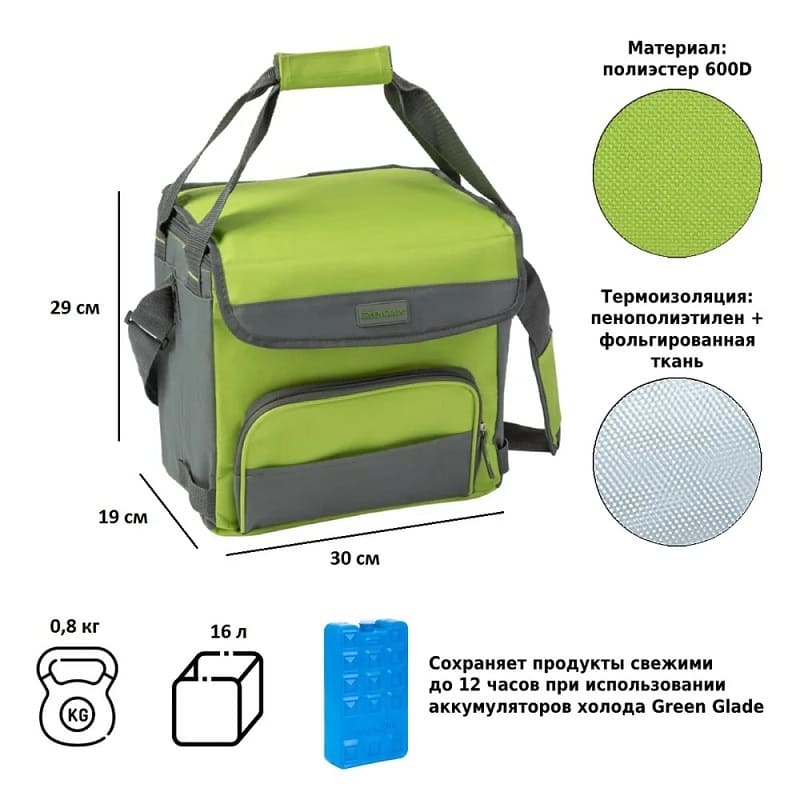 Изотермическая сумка-холодильник Green Glade P2130 16 л является незаменимой вещью в поездках на дачу, на пикниках и в дальних путешествиях. Кроме того изотермическая сумка-холодильник удобна для переноски контейнеров с едой и ланч-боксов.
