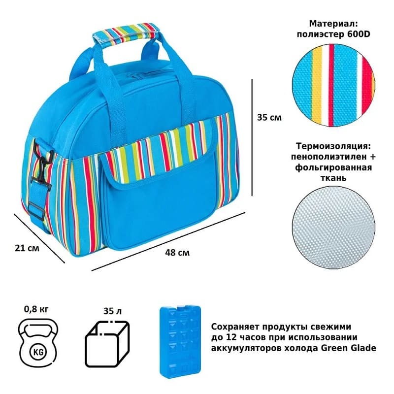Изотермическая сумка-холодильник Green Glade P6135 35 л является незаменимой вещью в поездках на дачу, на пикниках и в дальних путешествиях. Кроме того изотермическая сумка-холодильник удобна для переноски контейнеров с едой и ланч-боксов.