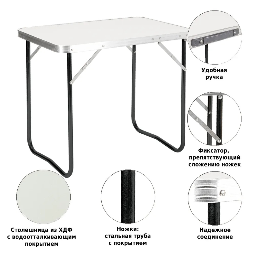 Каркас раскладного стола выполнен из качественного алюминия, что обеспечивает ему длительный срок службы. Складной стол для пикника и кемпинга быстро собирается и разбирается. В сложенном состоянии он занимает минимум места, что особенно удобно для его перевозки и хранения.