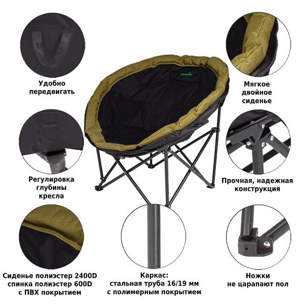• Материал: сиденье 2400D полиэстер, 600D полиэстер с ПВХ покрытием; спинка 600D полиэстер с ПВХ покрытием