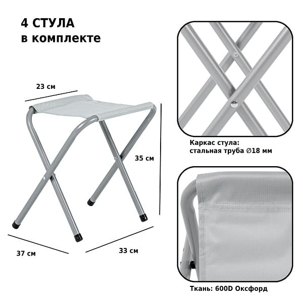 • Материал стула: железная труба 18∅ (толщина: 0,5 мм); 600D Оксфорд