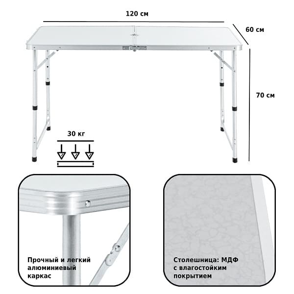 • Материал стола: алюминиевая труба Ø25/Ø22Ø19 (толщина 0,8 мм); МДФ 4,5 мм