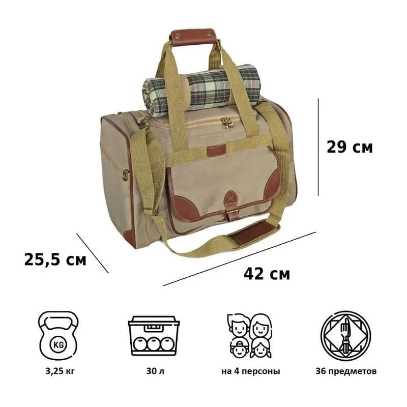 Изотермическая сумка-холодильник на 30 литров с пикниковым набором на 4 персоны