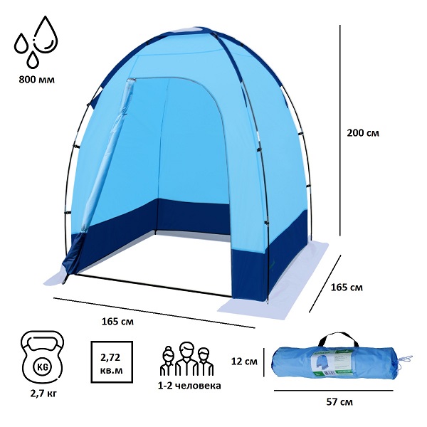Универсальная одноместная палатка, которую можно захватить с собой на рыбалку, использовать как небольшой навес и даже кабину для душа, туалета или переодевания. В палатку удобно заходит - у нее широкая дверца, которую можно фиксировать лентами. Высота палатки рассчитана так, чтобы в полный рост встал даже высокий человек.