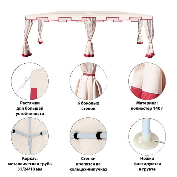 Тент садовый из полиэстера – практичное и популярное решение для использования на даче, пикниках, шашлыках и кемпинге. Крыша тента защитит от солнца. Тент садовый из полиэстера быстро и несложно монтируется и закрепляется с помощью растяжек.
