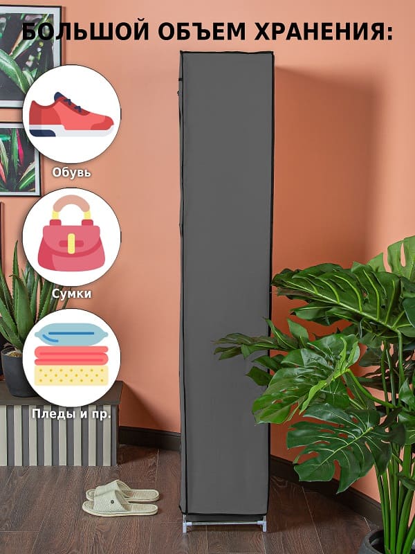 Высокая и узкая обувница шкаф HELEX Home – это многоярусная закрытая стойка с полками для обуви. Благодаря большой вместительности и выдерживаемой нагрузке в 20 кг, такую вешалку обувницу можно использовать не только для хранения обуви, но и других вещей. Обувница узкая, всего 30 х 60 см, поэтому не займет много места в коридоре или прихожей. При этом стойка для обуви высокая, имеет девять ярусов, что позволяет разместить 27 пар и решить вопрос хранения обуви в доме. Закрытая обувница шкаф выполнена из легких металлических труб, полки и дверь-занавес - из высококачественного нетканого материала высокой плотности. Собирается быстро и просто.