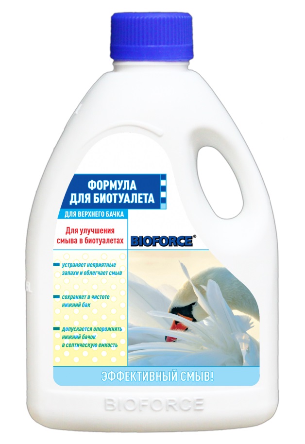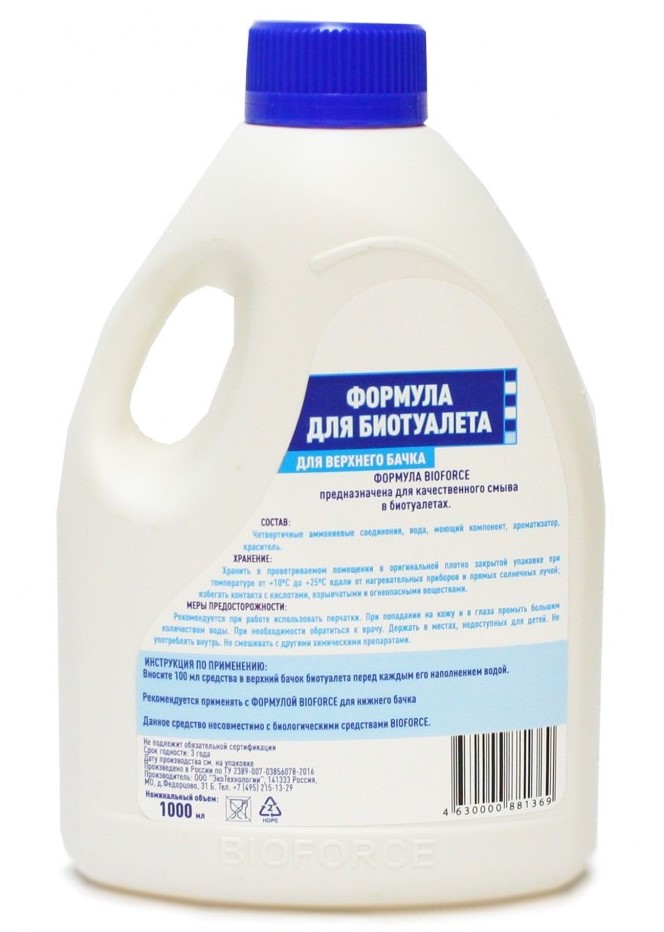 Жидкость для верхнего бачка биотуалета ФОРМУЛА BIOFORCE предназначена для качественного смыва в биотуалетах. (1000мл)