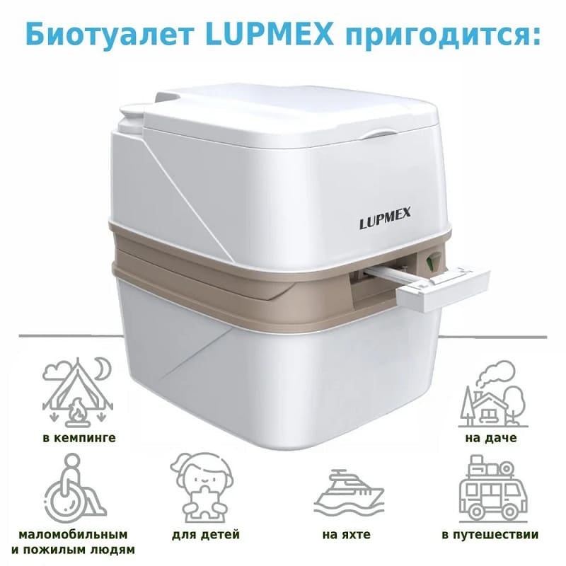 Биотуалет LUPMEX – простое и функциональное решение при отсутствии стационарной канализации. В модели есть бак для чистой воды на 10л (40 смываний), а также большой бак для отходов на 18 л с индикатором заполнения. Биотуалет имеет удобное эргономичное сиденье, поршневой насос и эффективную систему смыва.