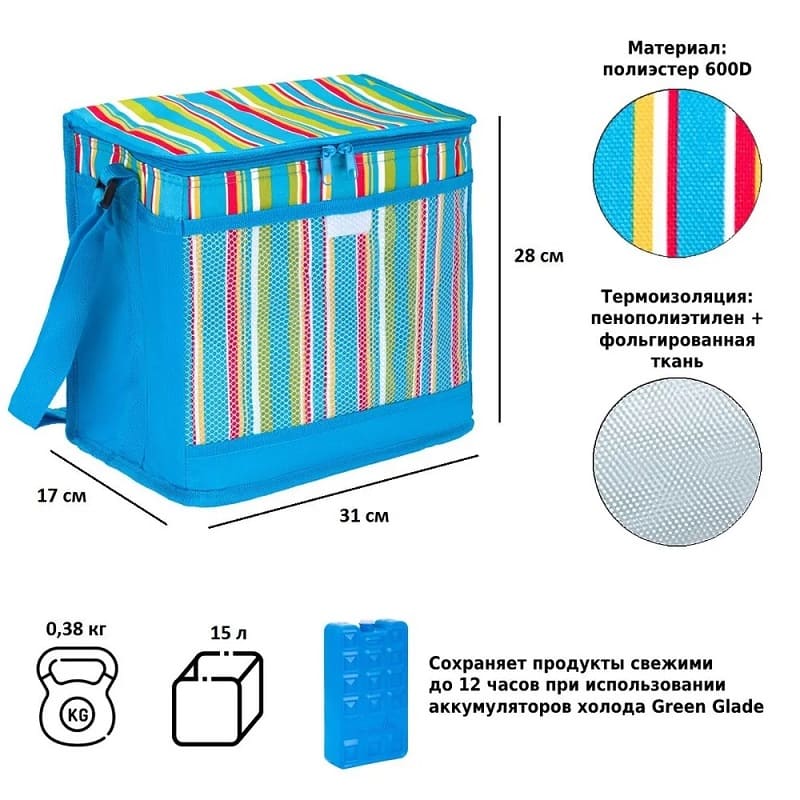 Изотермическая сумка-холодильник Green Glade P2015 15 л является незаменимой вещью в поездках на дачу, на пикниках и в дальних путешествиях. Кроме того изотермическая сумка-холодильник удобна для переноски контейнеров с едой и ланч-боксов.