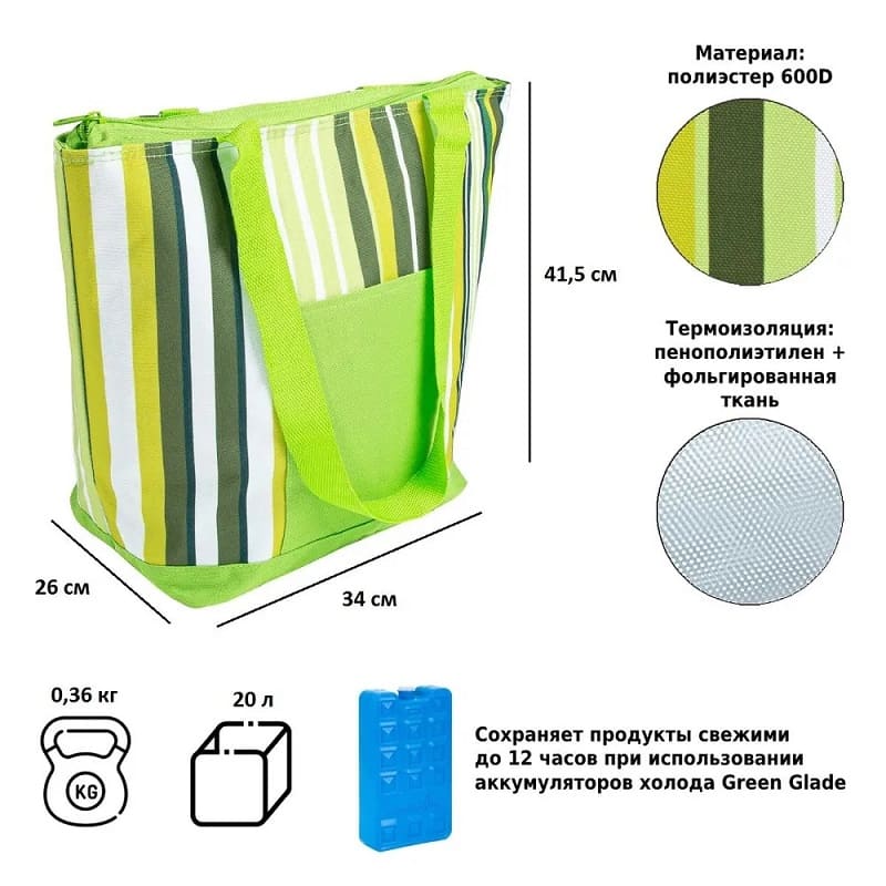 Изотермическая сумка-холодильник Green Glade P1120 20 л является незаменимой вещью в поездках на дачу, на пикниках и в дальних путешествиях. Кроме того изотермическая сумка-холодильник удобна для переноски контейнеров с едой и ланч-боксов.