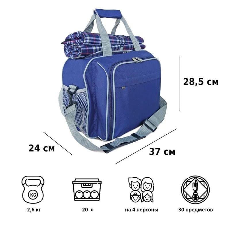 Изотермическая сумка-холодильник на 20 литров с пикниковым набором на 4 персоны