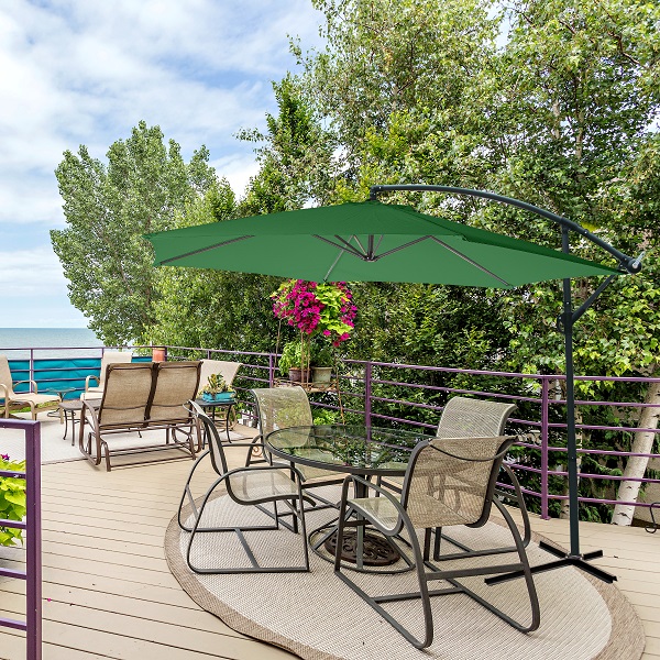 Уличный зонт Green Glade – это надежный и удобный элемент загородного участка или летнего кафе. Зонт можно использовать как во время ненастной погоды для защиты от дождя, так и в жаркий день, чтобы спрятаться от палящего солнца. Благодаря боковому расположению стойки под куполом можно установить любую пластиковую мебель: от дивана или шезлонга до обеденного стола со стульями.