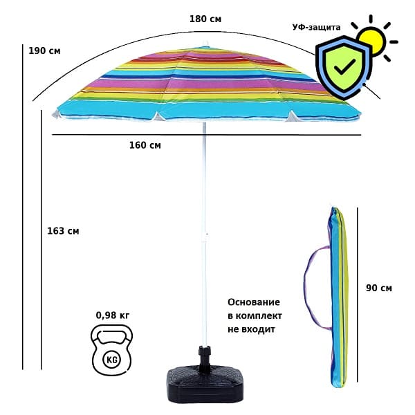 Перед использованием зонт необходимо надежно закрепить в основание для зонта. Основание в комплект поставки не входит.